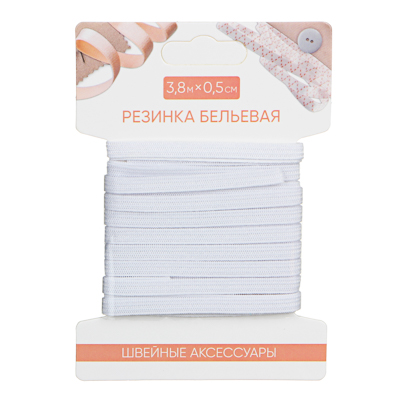 Резинка бельевая 0,5см х 3,8м, полиэстер, белая 308-014