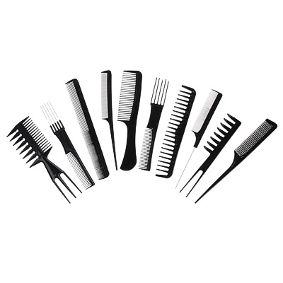 Набор профес. расчесок-гребней 10пр., пластик, черный ЮниLook 356-414