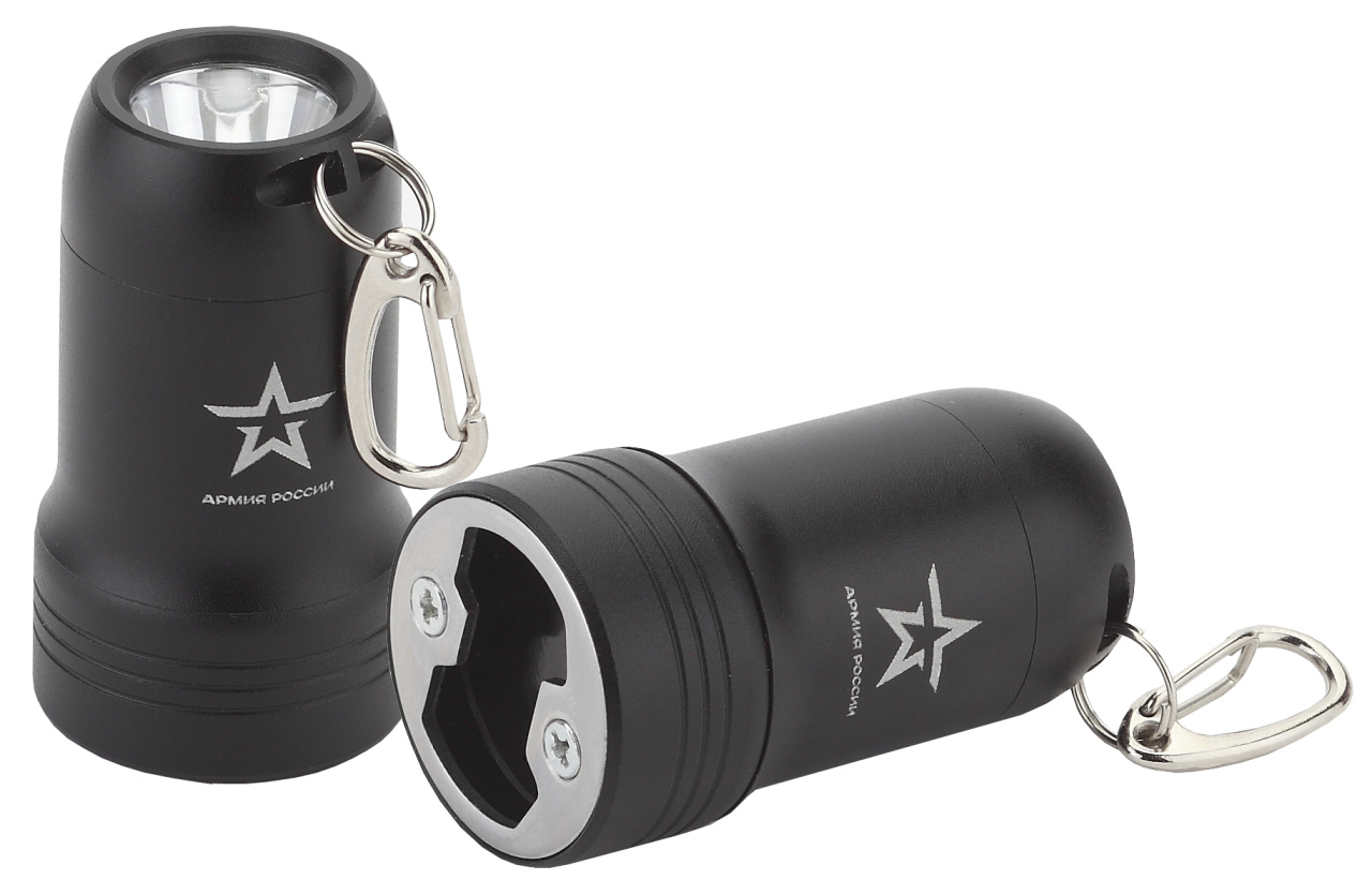 Фонарь брелок Привал [0,5Вт + рефлектор, алюм, открывашка, 3xLR44 в ком, бл] АРМИЯ РОССИИ ЭРА