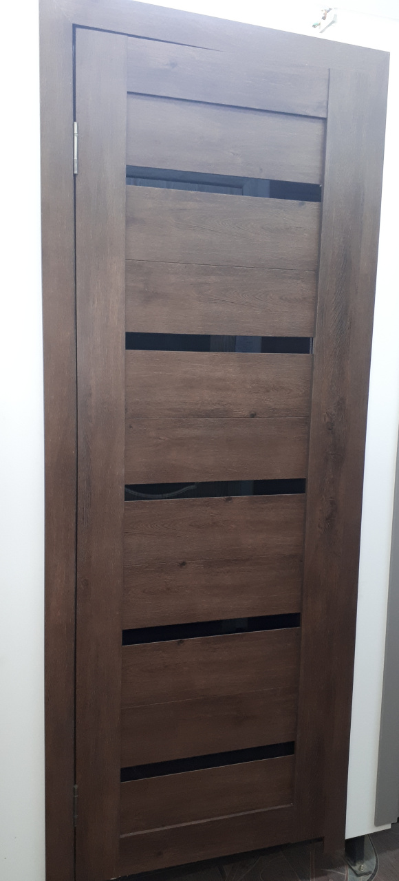 Дверь межкомнатная ЭКО Simple 1 черное стекло лакобель дуб бельмонд 60*200 УЦЕНКА