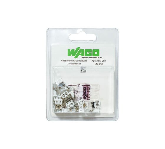 -WAGO соед. клемма СМК 2273-202 2-провод. 24А/450В/0,5-2,5мм 2х(0,5-2,5мм2) Cu/Cu PUSH WIRE Бытовые розетки и выключатели.Лампы.Кабель и провод.Элементы и устройства питания.Изделия для электромонтажа.Низковольтное оборудование.Мультиметры, тестеры, звонки, удлинители, таймеры.Кабеленесущие системы.Боксы, корпуса, щитки.Датчики движения и детекторы освещения.Силовые розетки, вилки, разветвители.