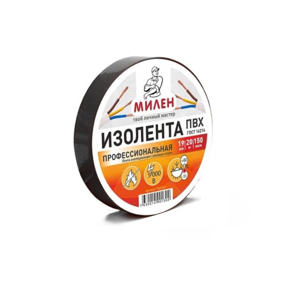 Изолента ПВХ 19ммх20м черная Милен
