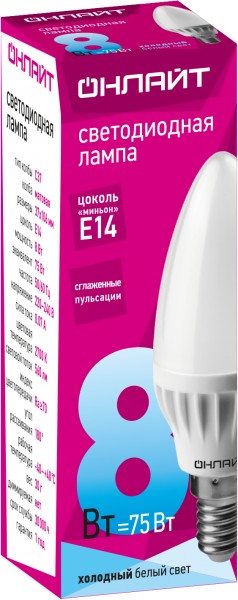 --Лампа св. 61128 OLL-C37-8-230-6,5K-E14-FR онлайт Бытовые розетки и выключатели.Лампы.Кабель и провод.Элементы и устройства питания.Изделия для электромонтажа.Аксессуары и комплектующие для освещения.Низковольтное оборудование.Мультиметры, тестеры, звонки, удлинители, таймеры.Кабеленесущие системы.Боксы, корпуса, щитки.Датчики движения и детекторы освещения.Силовые розетки, вилки, разветвители.