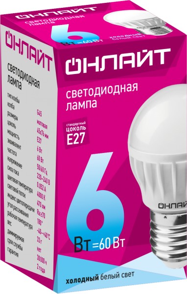 --Лампа св. 71 646 OLL-G45-6-230-4K-E27 онлайт 4670004716465Бытовые розетки и выключатели.Лампы.Кабель и провод.Элементы и устройства питания.Изделия для электромонтажа.Аксессуары и комплектующие для освещения.Низковольтное оборудование.Мультиметры, тестеры, звонки, удлинители, таймеры.Кабеленесущие системы.Боксы, корпуса, щитки.Датчики движения и детекторы освещения.Силовые розетки, вилки, разветвители.