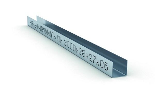 Направляющий потолочный профиль ПН 28х27 мм имеет П-образную форму и служит в качестве основания для стоечных профилей, а также для устройства перемычек между ними в каркасах перегородок и облицовок.