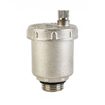 Авто-воздухоотводчик бакового (углового) подключения, для автоматического спуска воздуха из системы отопления, латунный с покрытием никелированным, присоединение: 1/2" наружная.