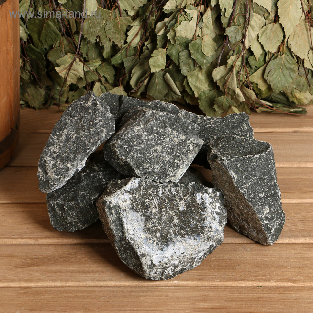 Камень для бани Дунит 20кг коробка колотый