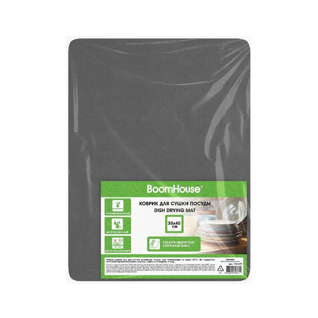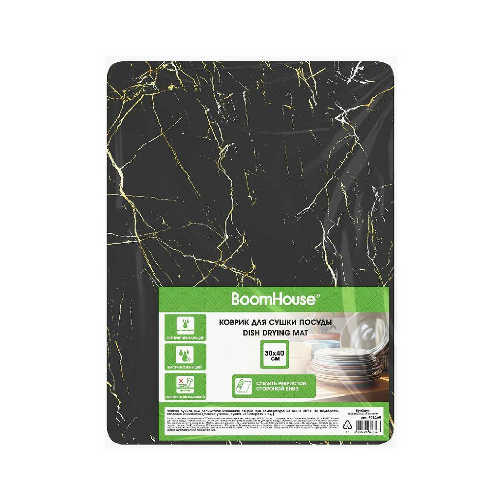 Коврик для сушки посуды NANO 30х40см МРАМОР ЧЕРНЫЙ влаговпитывающий, нескользящий, BOOMHOUSE, 701160