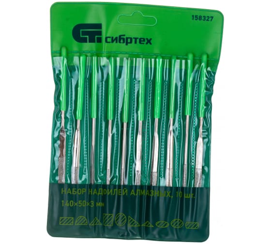 Набор надфилей алмазных, 140х50х3, 10 шт.// Сибртех
