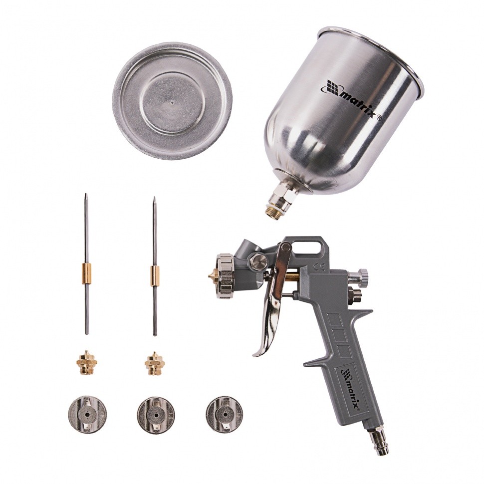 Краскораспылитель пневмат. с верхним бачком V= 0,6 л, сопла диаметром 1.2, 1.5 и 1.8 мм// Matrix