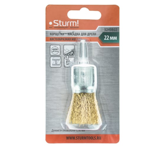 Корщетка-насадка 5240802 для дрели Sturm! Кистеобразная мягкая, 22 мм, хвост 6 мм, латун.волн.