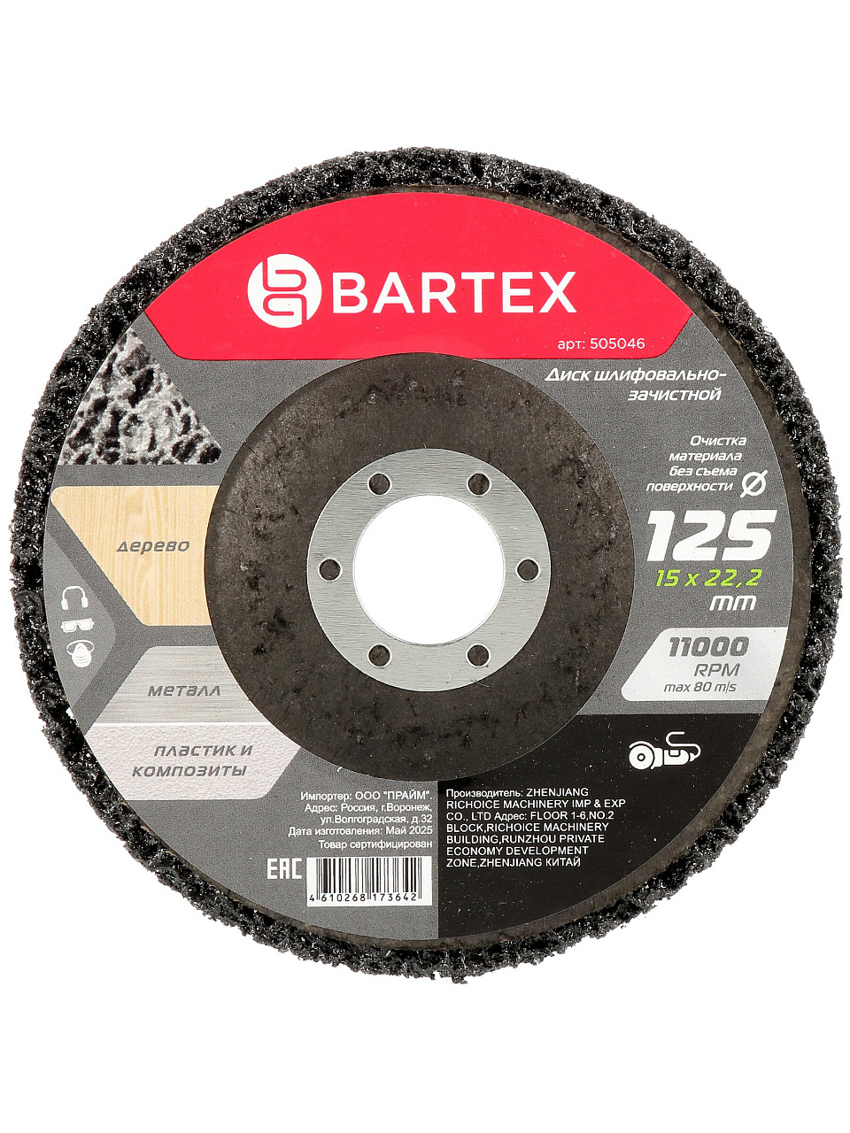Диск шлифовальный для УШМ, Bartex, коралловый, диаметр 125 мм, черный, умеренная жесткость, R011