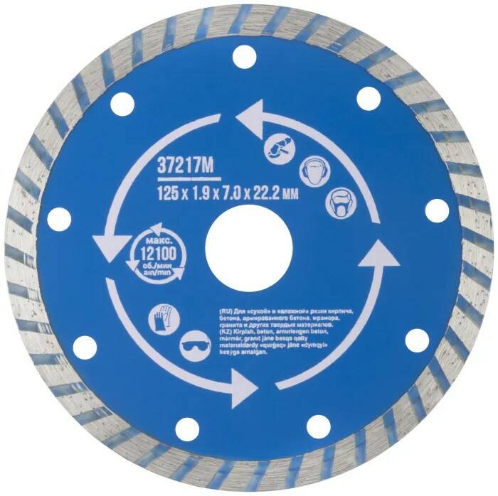 Диск отрезной алмазный "турбо" (сухая и влажная резка) 125х1,9х7,0х22,2 мм MOS 37217М