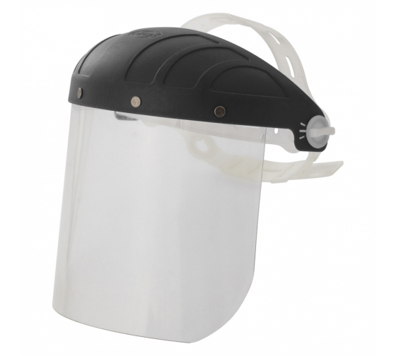 Защитный лицевой щиток Россия СВОНА модель НБТ-01 ЛЮКС 89129 обеспечивает защиту глаз и лица от воздействия летящих твердых частиц камня, дерева, металла при механической обработке поверхностей, а так же в быту при работе с пневмо- и электроинструментом, малярных и др. работах. Благодаря регулируемому оголовью изделие надежно фиксируется на голове. Экран выполнен из полиэтилентерефталата (ПЭТ), козырек из термостойкой пластмассы.