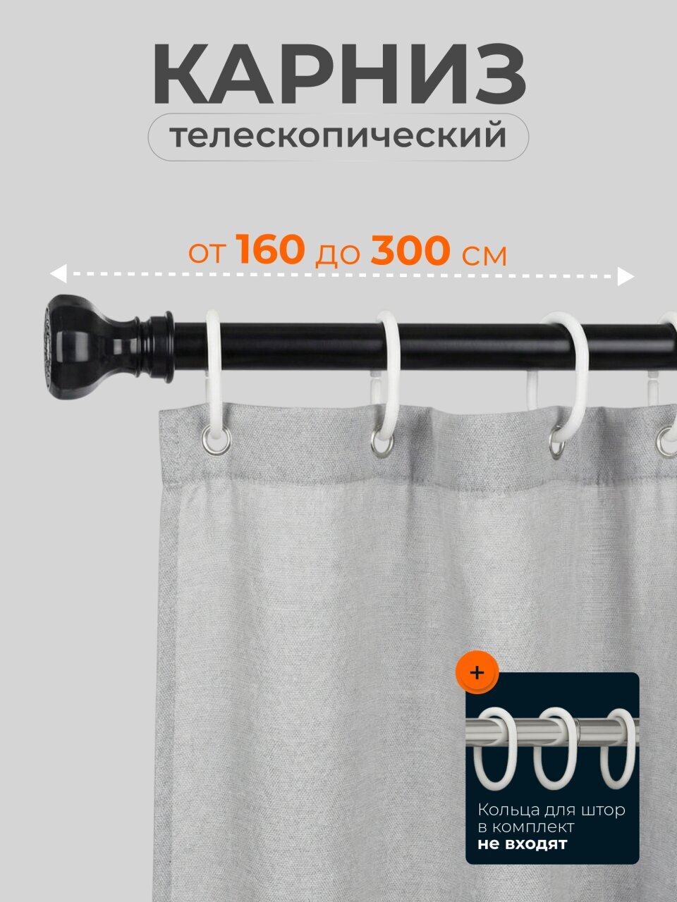 Карниз для ванной 160 см, 300 см, телескопический, черный, A310034