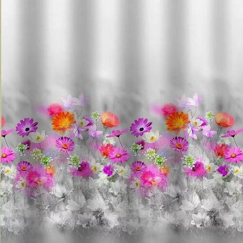 Штора с рисунком, РОЗОВЫЕ ГЕРБЕРЫ, без колец, полиэстэр САНАКС 01-37