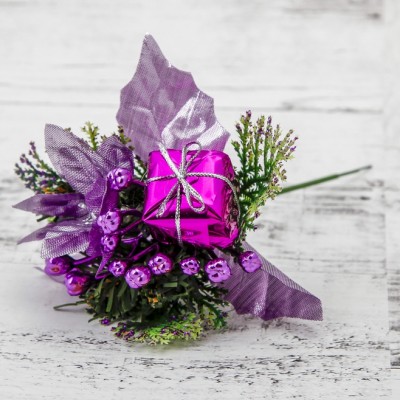 Декор "Новогодние мечты" подарок, цветок и ягодки, сиреневый 14 см 2371278