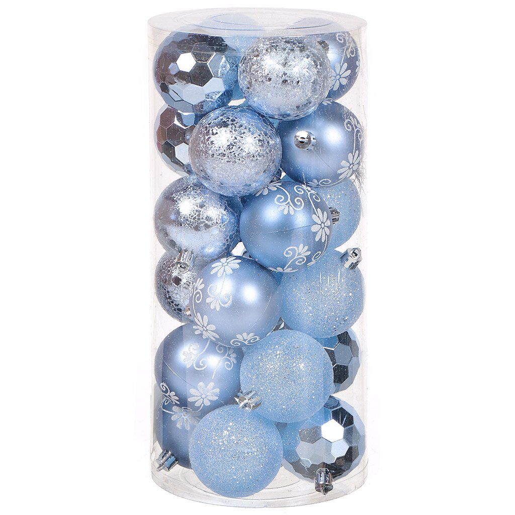 Елочный шар 24 шт, голуб, 6 см, пластик, SYQB-0120196 4630084772799