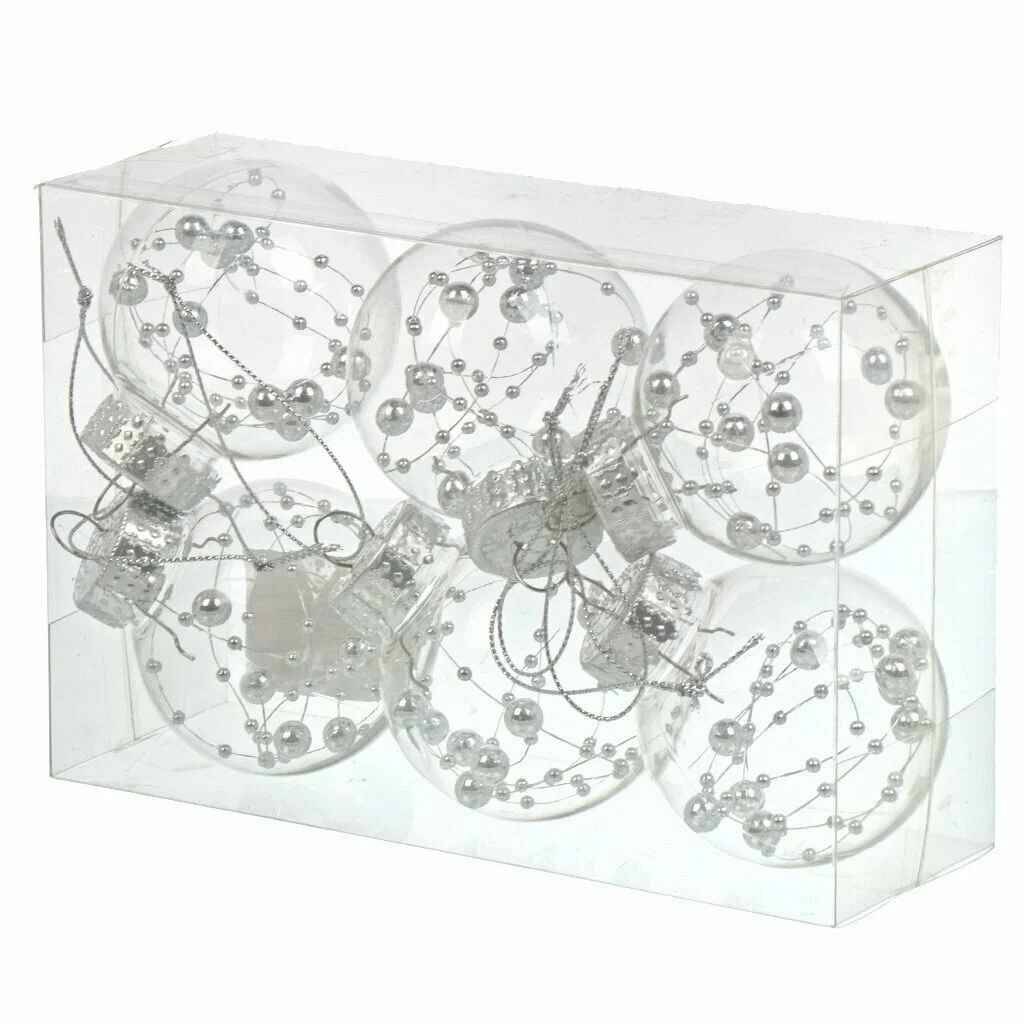 Набор шаров 6 шт, серебро, 6 см, пластик, прозрачный с наполнением, F010008 7836