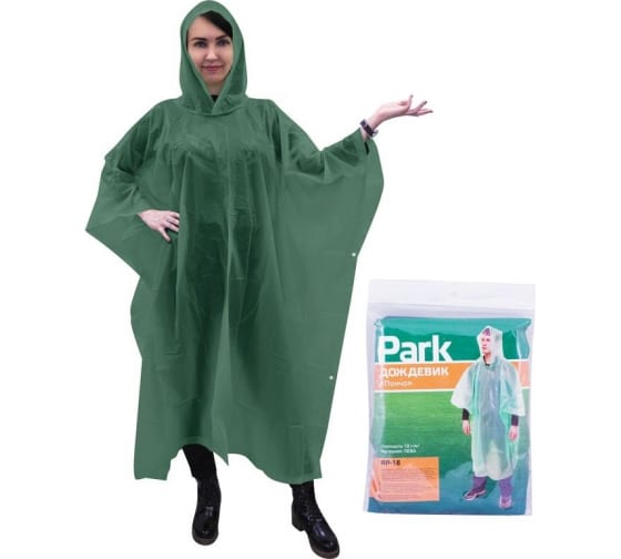 Дождевик-пончо Park RP-18, PEVA, размер XL, зеленый
