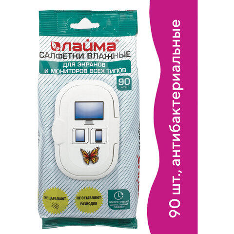 Салфетки влажные LAIMA "ДЛЯ ЭКРАНОВ всех типов и ОПТИКИ (очки, объективы)", клапан, 90 штук, 605660