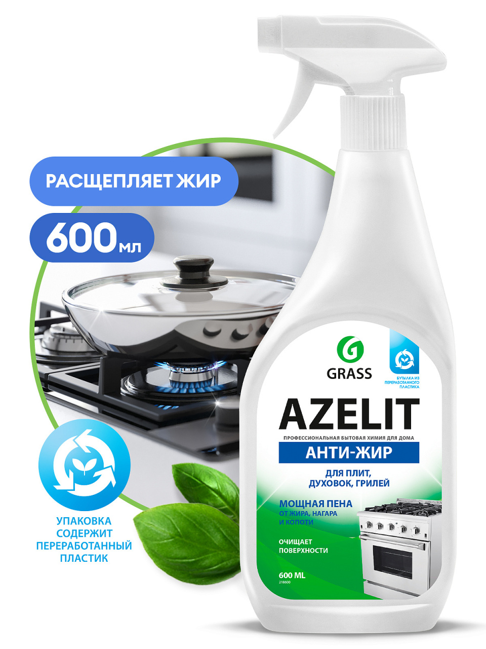Средство для чистки плит, духовок, грилей от жира/нагара 600 мл GRASS AZELIT, щелочное, распылитель,