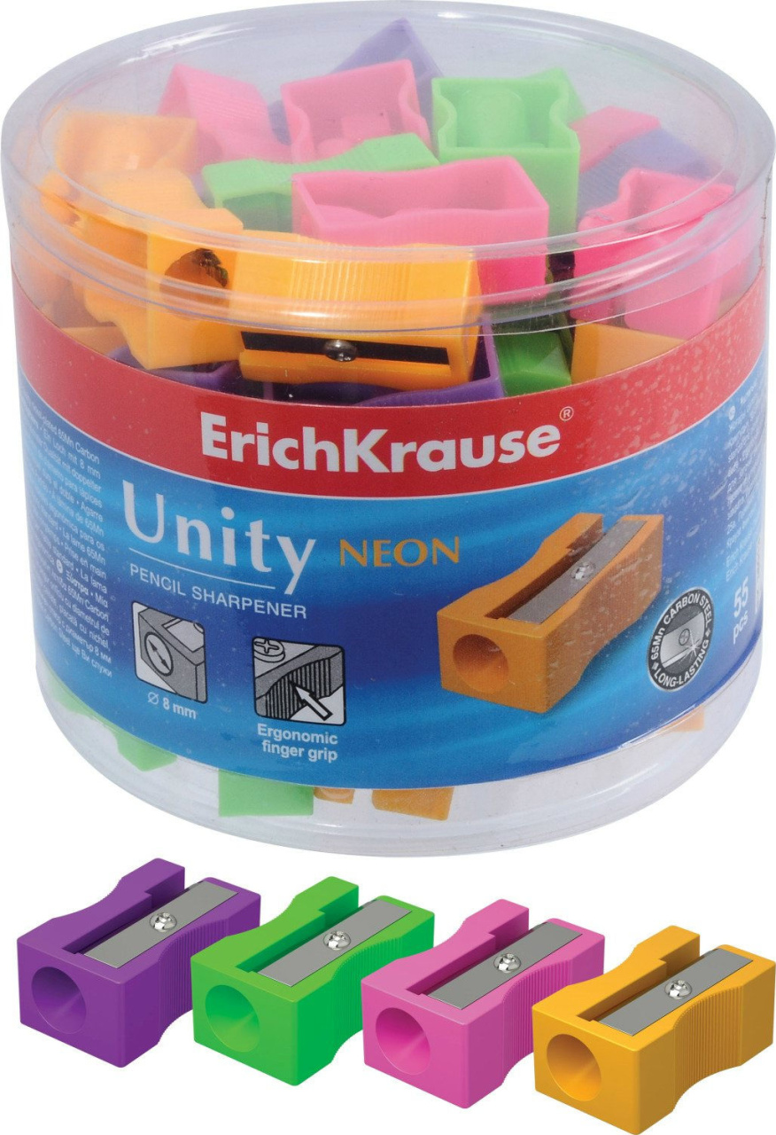 Точилка пластиковая ErichKrause "Unity Neon" 1 отверстие, грип-зона, ассорти, 38013 E.K.