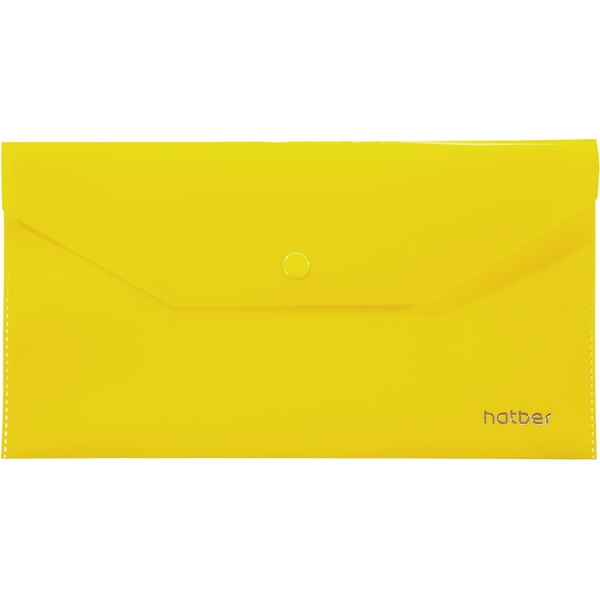 Папка-конверт на кнопке, C6, PP 180 мкм, полупрозрачная, Hatber_желтая 00005
