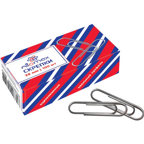 Скрепки 33 мм, оцинкованные, 100 шт., овальные, в к/к, Attomex 4135302