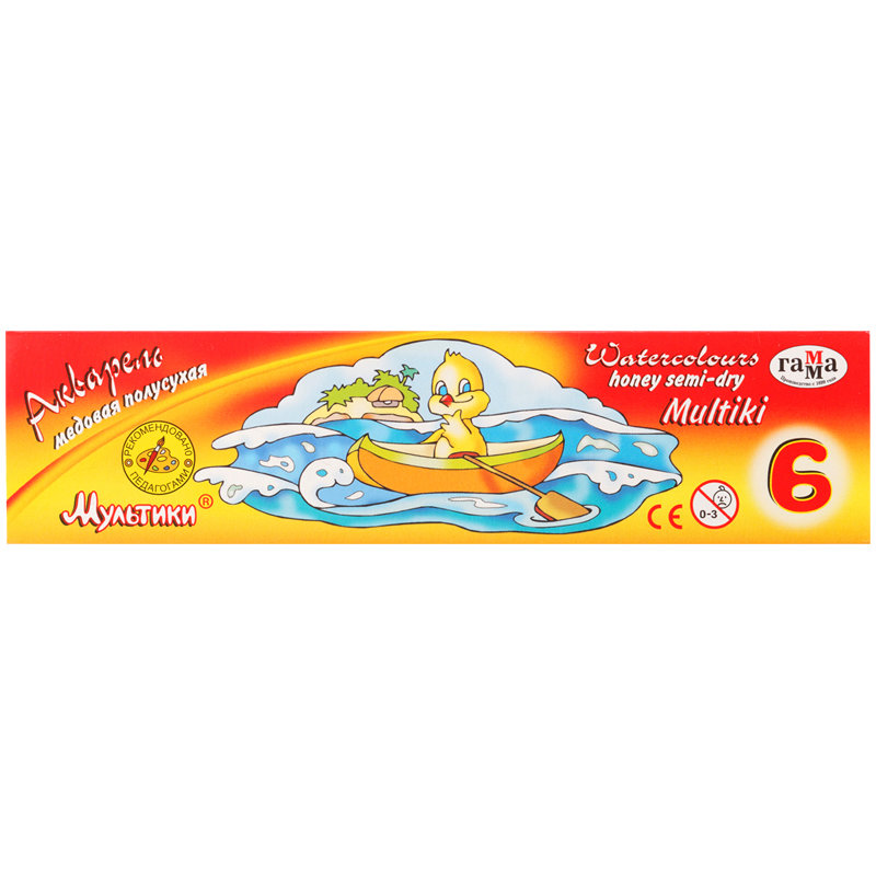 Акварель медовая полусухая 6 цветов ГАММА Мультики, к/уп., 211046 ГАММА