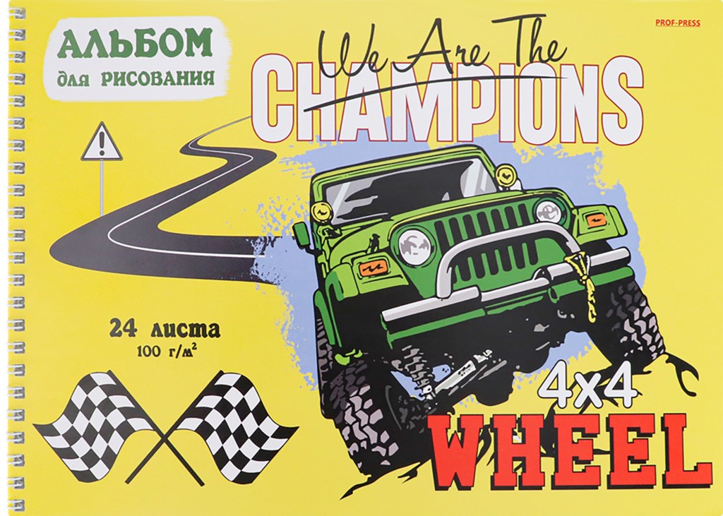 Альбом для рисования А4/100/24 л., на гребне, Prof-Press Чемпионский внедорожник, мел. бумага, 24-967