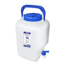 Канистра «Aqualine» 20 л. с краном - выполнен из высококачественного пластика. Обладает высокими прочностными характеристиками – герметичностью, повышенной транспортабельностью, механической прочностью, удобен и долговечен в эксплуатации. Широкая горловина бидона обеспечивает удобство фасовки и выгрузки продукции, а также лёгкость мытья изнутри. Плотно прилегающая крышка бидона обеспечивает полную герметичность, а удобная ручка позволит легко переносить ёмкость с места на место. При помощи крана, можно быстро и без лишних усилий слить нужный объём. Кран концевой полиэтиленовый, повышенной герметичности. Большая круглая головка штока позволяет производить открытие и закрытие крана с меньшими усилиями. Для удобства открытия и закрытия крана на торце головки нанесена широкая синяя стрелка.
