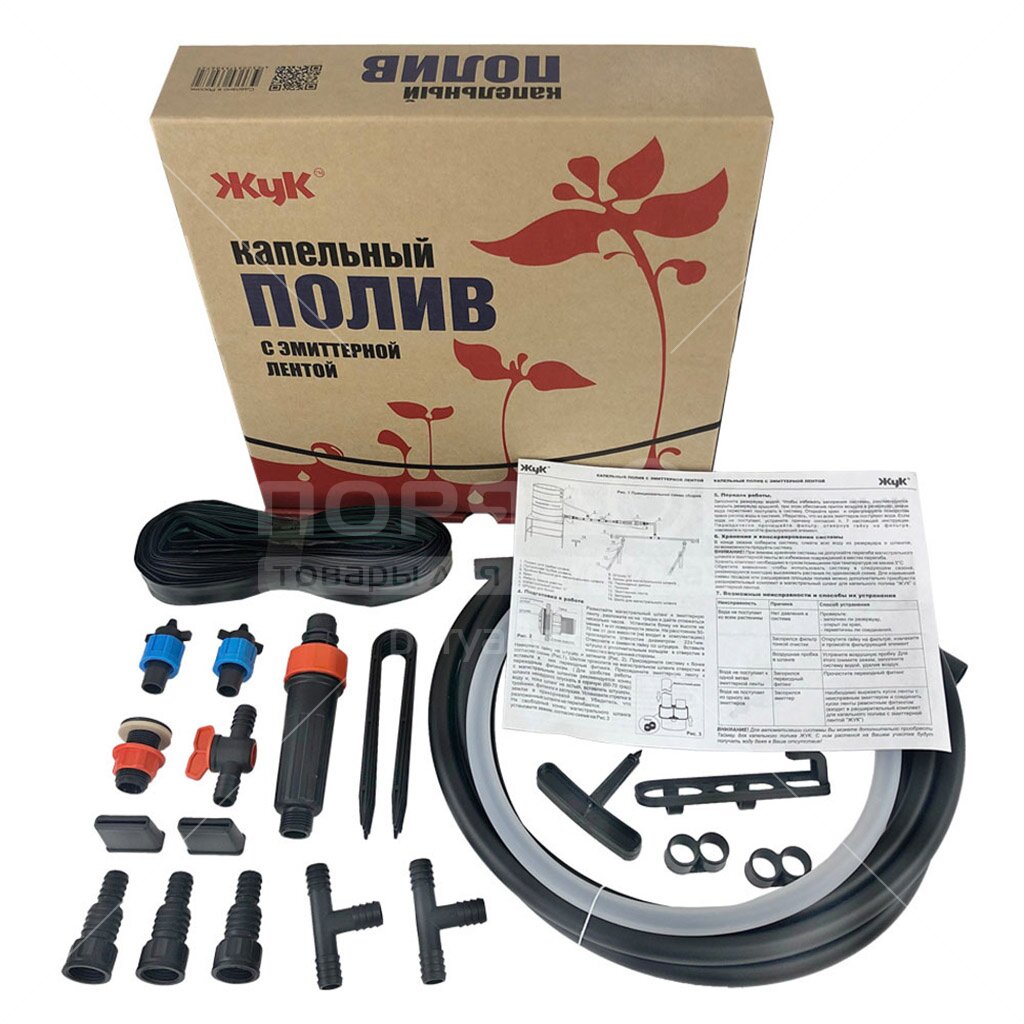 Набор для капельного полива с эмиттерной лентой 24 м, Жук, 330665-00