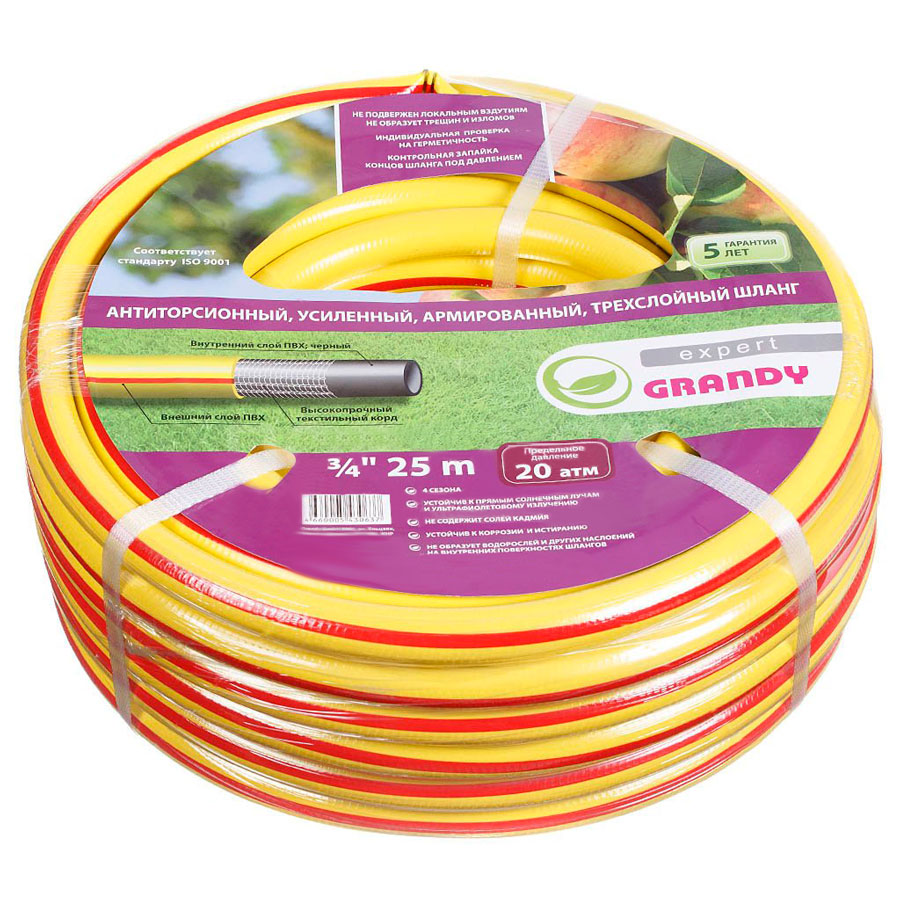 Шланг полив GRANDY EXPERT +3/4 (20) 25м армир 3-х сл