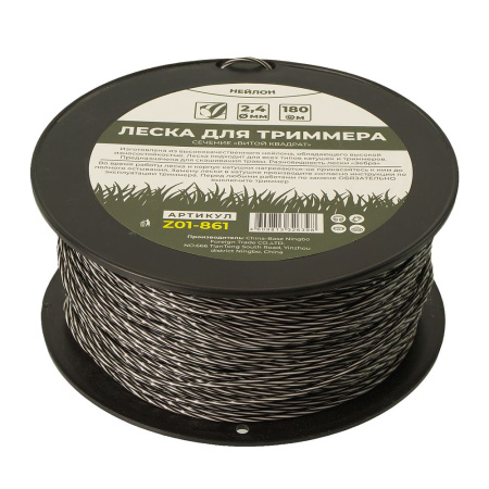 Леска для триммера двухцветная (Зебра) 2,4мм*180м, ЧЕГЛОК Z01-861