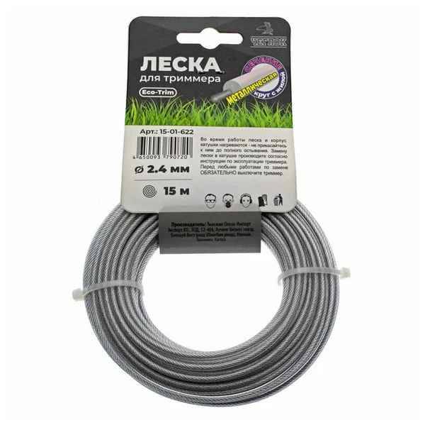 Леска на триммер Д2.4*15м (круг с металлической жилой) ЧЕГЛОК 15-01-622