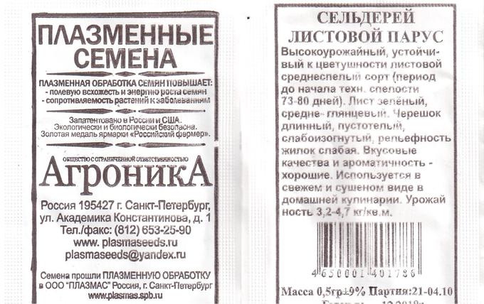 Семена Сельдерей листовой Парус Плазма б/п