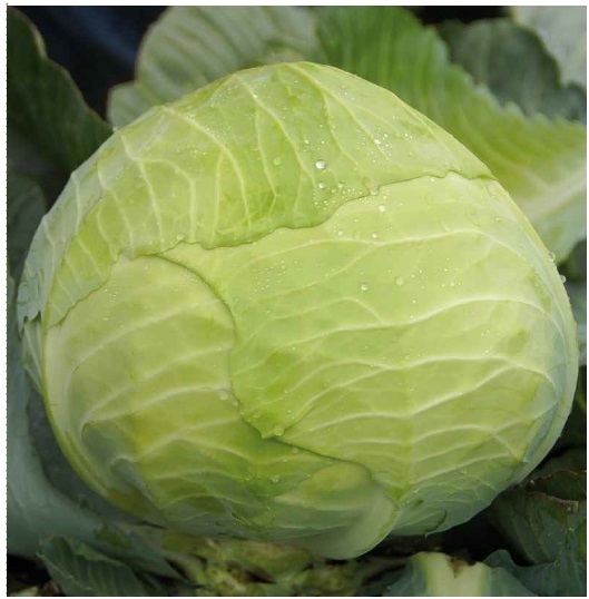 Чрезвычайно высокая урожайность, высокая пластичность, великолепная однородность, высокая плотность кочана, очень длительная сохранность на корню, хорошая устойчивость к растрескиванию, устойчивость к фузариозу и полевая толерантность к трипсамОкруглый, с тонкой внутренней структурой, очень плотный, зеленого цвета, массой 4 -8 кг, с высокой устойчивостью к растрескиванию